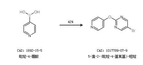 1.通过吡啶-4-硼酸合成5-溴-2-(吡啶-4-基氧基)-嘧啶,收率约42%;