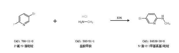 2.通过2-氟-5-溴吡啶和盐酸甲胺合成5-溴-2-(甲基氨基)吡啶,收率约63%;