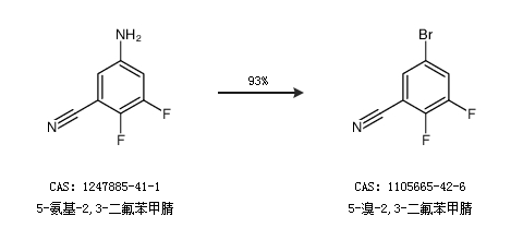1.通过5-氨基-2,3-二氟苯甲腈合成5-溴-2,3-二氟苯甲腈,收率约93%;