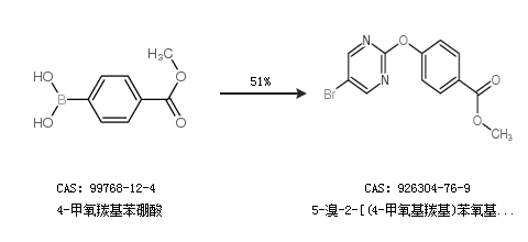 2.通过4-甲氧羰基苯硼酸合成5-溴-2-[(4-甲氧基羰基)苯氧基]嘧啶,收率约51%;