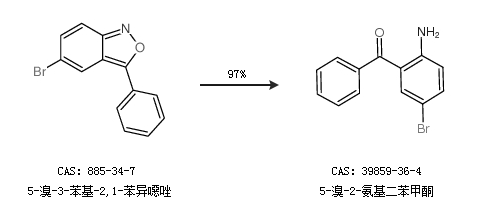 1.通过5-溴-3-苯基-2,1-苯异噁唑合成5-溴-2-氨基二苯甲酮,收率约97%;