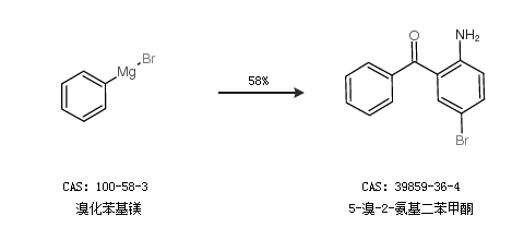 2.通过溴化苯基镁合成5-溴-2-氨基二苯甲酮,收率约58%;