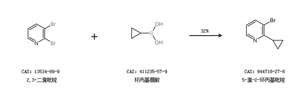 1.通过2,3-二溴吡啶和环丙基硼酸合成5-溴-2-环丙基吡啶,收率约32%;