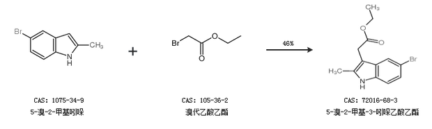 1.通过5-溴-2-甲基吲哚和溴代乙酸乙酯合成5-溴-2-甲基-3-吲哚乙酸乙酯,收率约46%;