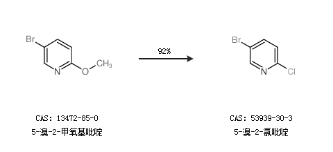 2.通过5-溴-2-甲氧基吡啶合成5-溴-2-氯吡啶,收率约92%;