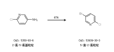 1.通过2-氯-5-氨基吡啶合成5-溴-2-氯吡啶,收率约67%;