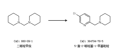 2.通过二哌啶甲烷合成5-溴-2-哌啶基-1-甲基吡啶