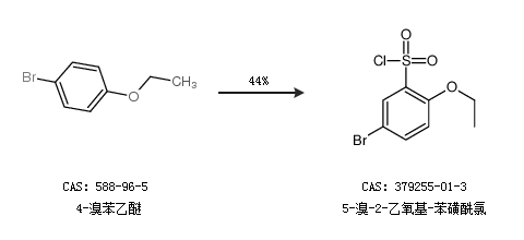 1.通过4-溴苯乙醚合成5-溴-2-乙氧基-苯磺酰氯,收率约44%;