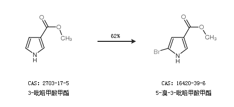 1.通过3-吡咯甲酸甲酯合成5-溴-3-吡咯甲酸甲酯,收率约62%;