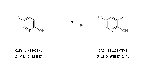 1.通过2-羟基-5-溴吡啶合成5-溴-3-碘吡啶-2-醇,收率约84%;