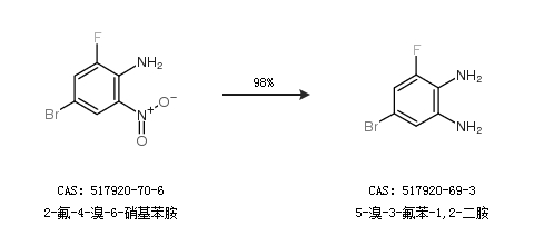 1.通过2-氟-4-溴-6-硝基苯胺合成5-溴-3-氟苯-1,2-二胺,收率约98%;