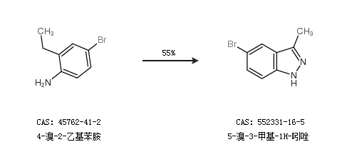 2.通过4-溴-2-乙基苯胺合成5-溴-3-甲基-1H-吲唑,收率约55%;
