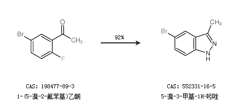 1.通过1-(5-溴-2-氟苯基)乙酮合成5-溴-3-甲基-1H-吲唑,收率约92%;
