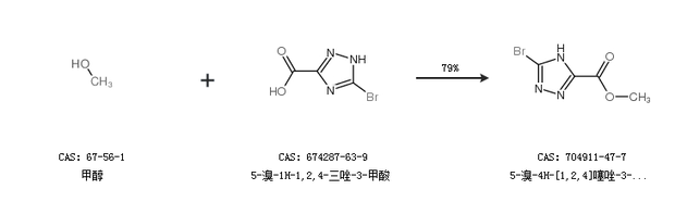 2.通过甲醇和5-溴-1H-1,2,4-三唑-3-甲酸合成5-溴-4H-[1,2,4]噻唑-3-羧酸甲酯,收率约79%;