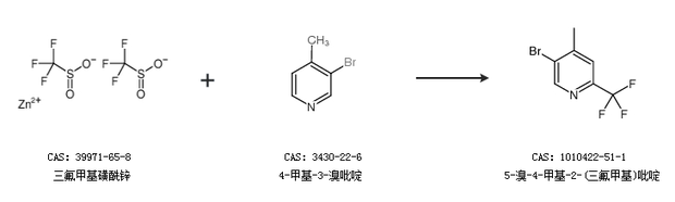 1.通过三氟甲基磺酰锌和4-甲基-3-溴吡啶合成5-溴-4-甲基-2-(三氟甲基)吡啶