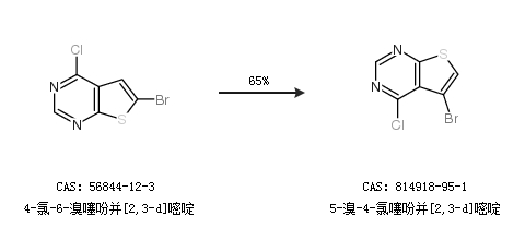 1.通过4-氯-6-溴噻吩并[2,3-d]嘧啶合成5-溴-4-氯噻吩并[2,3-d]嘧啶,收率约65%;