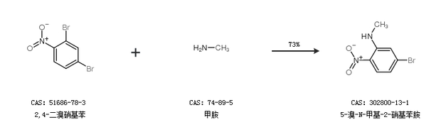 2.通过2,4-二溴硝基苯和甲胺合成5-溴-N-甲基-2-硝基苯胺,收率约73%;