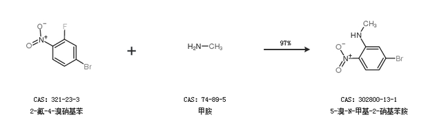 1.通过2-氟-4-溴硝基苯和甲胺合成5-溴-N-甲基-2-硝基苯胺,收率约97%;