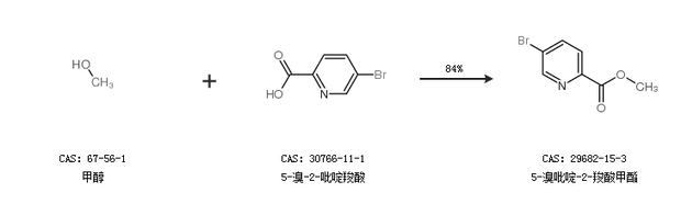 2.通过甲醇和5-溴-2-吡啶羧酸合成5-溴吡啶-2-羧酸甲酯,收率约84%;