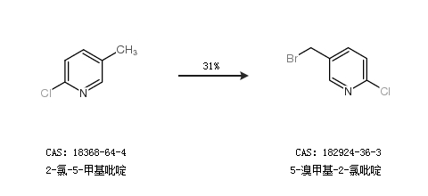 2.通过2-氯-5-甲基吡啶合成5-溴甲基-2-氯吡啶,收率约31%;