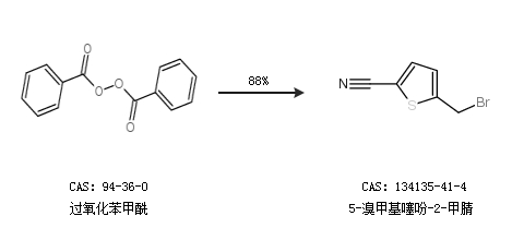 1.通过过氧化苯甲酰合成5-溴甲基噻吩-2-甲腈,收率约88%;