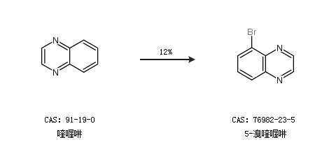 1.通过喹喔啉合成5-溴喹喔啉,收率约12%;