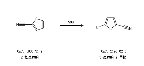 2.通过2-氰基噻吩合成5-溴噻吩-2-甲腈,收率约99%;