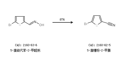 1.通过5-溴硫代苯-2-甲醛肟合成5-溴噻吩-2-甲腈,收率约87%;