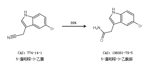 1.通过5-溴吲哚-3-乙腈合成5-溴吲哚-3-乙酰胺,收率约89%;