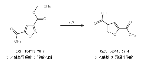 1.通过5-乙酰基异噁唑-3-羧酸乙酯合成5-乙酰基-3-异噁唑羧酸,收率约75%;