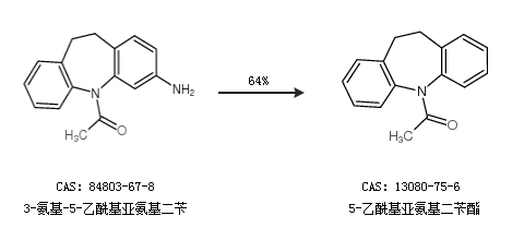 1.通过3-氨基-5-乙酰基亚氨基二苄合成5-乙酰基亚氨基二苄酯,收率约64%;