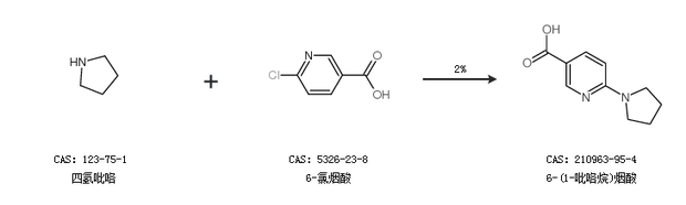 2.通过四氢吡咯和6-氯烟酸合成6-(1-吡咯烷)烟酸,收率约2%;