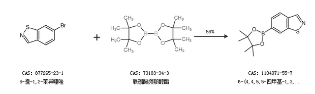 1.通过6-溴-1,2-苯异噻唑和联硼酸频那醇酯合成6-(4,4,5,5-四甲基-1,3,2-二噁硼烷-2-基)苯并[d]异噻唑,收率约56%;