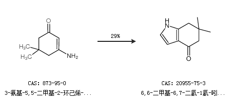 1.通过3-氨基-5,5-二甲基-2-环己烯-1-酮合成6,6-二甲基-6,7-二氢-1氢-吲哚-4(5氢)-酮,收率约29%;