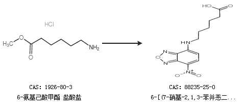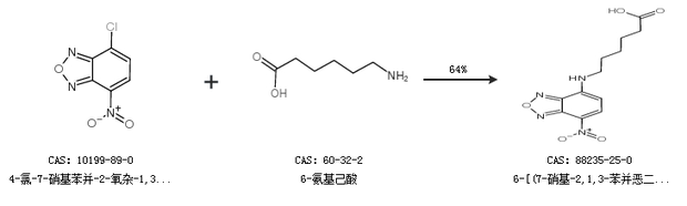 1.通过4-氯-7-硝基苯并-2-氧杂-1,3-二唑和6-氨基己酸合成6-[(7-硝基-2,1,3-苯并恶二唑-4-基)氨基]己酸,收率约64%;