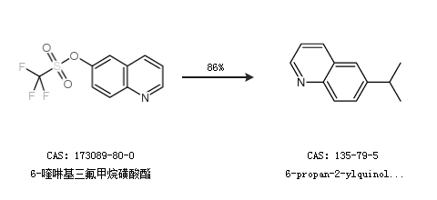 1.通过6-喹啉基三氟甲烷磺酸酯合成6-propan-2-ylquinoline,收率约86%;