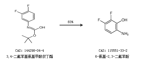 2.通过3,4-二氟苯基氨基甲酸叔丁酯合成6-氨基-2,3-二氟苯酚,收率约83%;