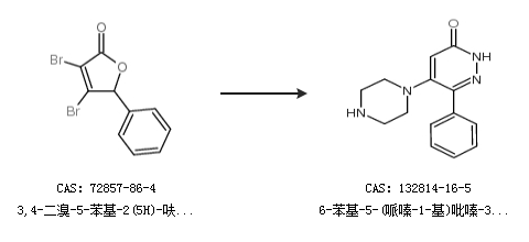 2.通过3,4-二溴-5-苯基-2(5H)-呋喃酮合成6-苯基-5-(哌嗪-1-基)吡嗪-3(2H)-酮