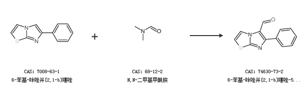 1.通过6-苯基-咪唑并[2,1-b]噻唑和N,N-二甲基甲酰胺合成6-苯基-咪唑并[2,1-b]噻唑-5-甲醛
