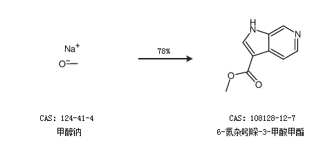 1.通过甲醇钠合成6-氮杂吲哚-3-甲酸甲酯,收率约78%;