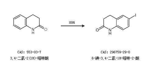 1.通过3,4-二氢-2(1H)-喹啉酮合成6-碘-3,4-二氢-1H-喹啉-2-酮,收率约89%;