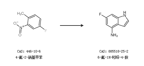 1.通过4-氟-2-硝基甲苯合成6-氟-1H-吲哚-4-胺