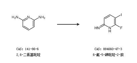 2.通过2,6-二氨基-3-碘吡啶合成6-氟-5-碘吡啶-2-胺