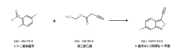 1.通过2,5-二氟硝基苯和氰乙酸乙酯合成6-氟苯并[c]异噁唑-3-甲腈
