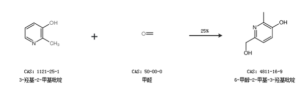 1.通过3-羟基-2-甲基吡啶和甲醛合成6-甲醇-2-甲基-3-羟基吡啶,收率约25%;