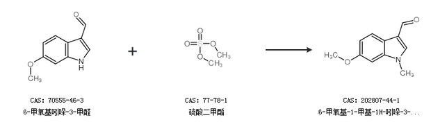 2.通过6-甲氧基吲哚-3-甲醛和硫酸二甲酯合成6-甲氧基-1-甲基-1H-吲哚-3-甲醛