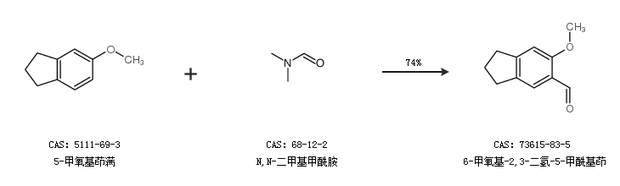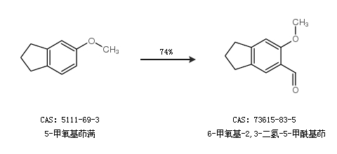 2.通过5-甲氧基茚满和N,N-二甲基甲酰胺合成6-甲氧基-2,3-二氢-5-甲酰基茚,收率约74%;