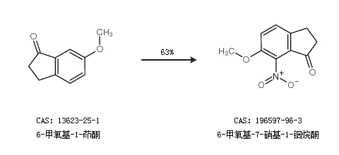 2.通过6-甲氧基-1-茚酮合成6-甲氧基-7-硝基-1-铟烷酮,收率约63%;