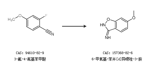 1.通过3-氟-4-氰基苯甲醚合成6-甲氧基-苯并[d]异噁唑-3-胺