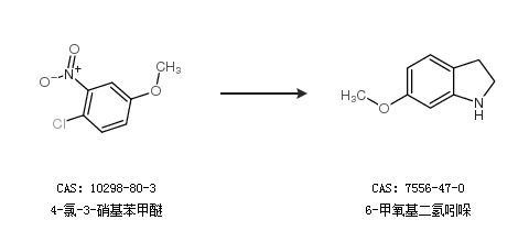 1.通过4-氯-3-硝基苯甲醚合成6-甲氧基二氢吲哚